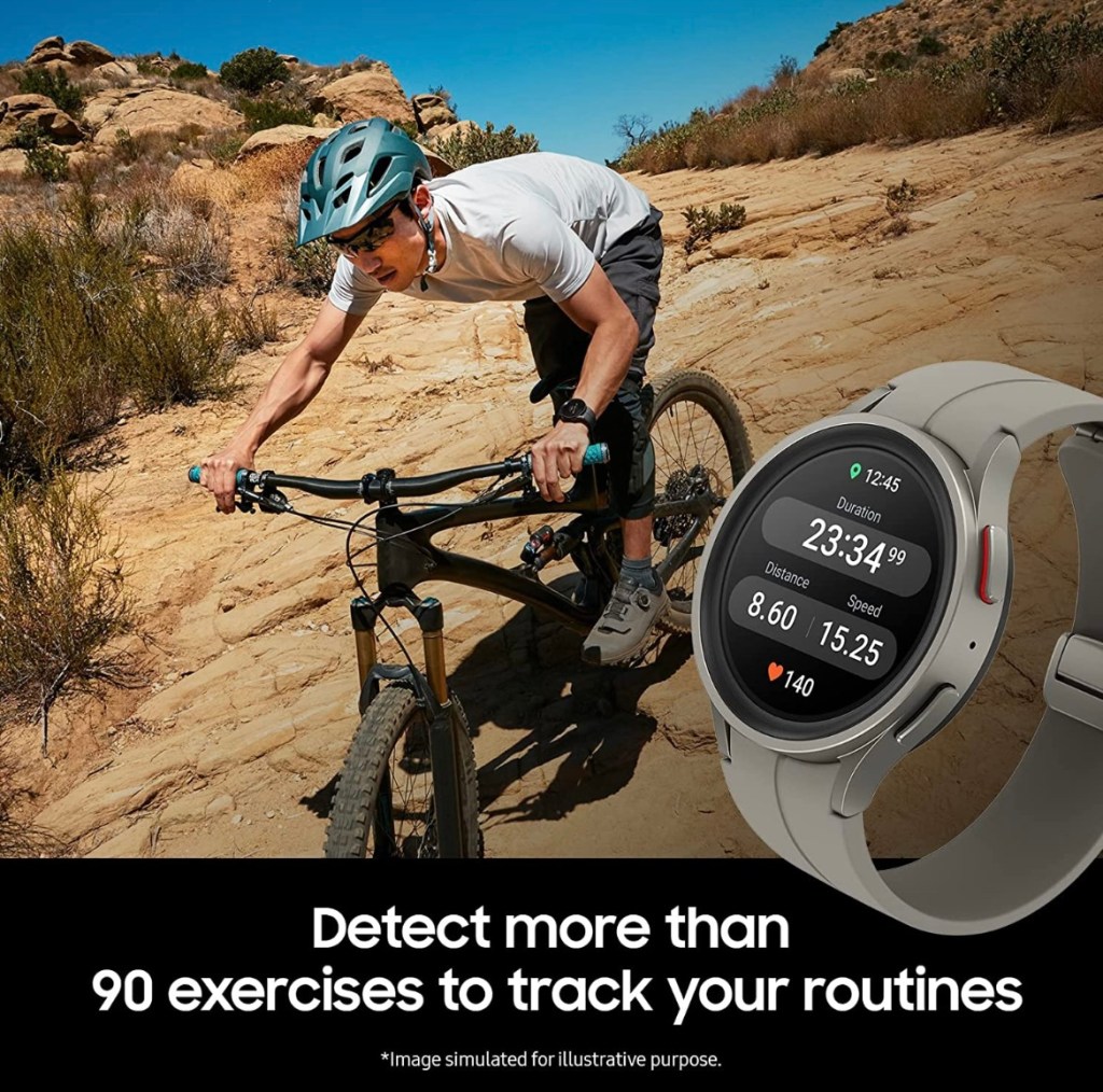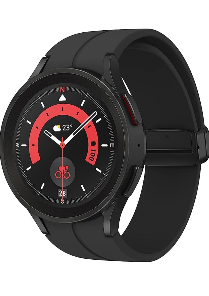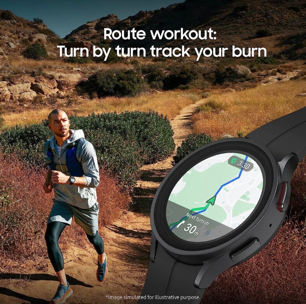 SAMSUNG Galaxy Watch 5 Pro 45mm Bluetooth Smartwatch w/ Body, Health, Fitness and Sleep Tracker, Improved Battery, Sapphire Crystal Glass, GPS Route Tracking, TitaniumFrame, US